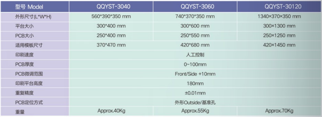 定位工作臺(tái)面可X軸、Y軸、Z角度精密微調(diào),方便快速精確對正。單、雙面PCB均可印刷。